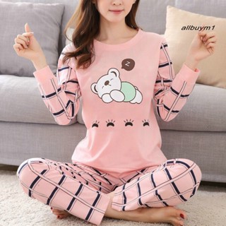 Bộ Đồ Ngủ Cổ Tròn In Họa Tiết Hoạt Hình Động Vật Dễ Thương Thời Trang Cho Nữ