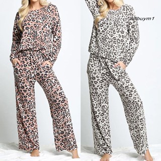 Bộ Áo Tay Dài Dáng Rộng In Họa Tiết Da Báo + Quần Dây Rút Thời Trang Cho Nữ
