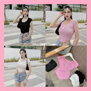 Áo len Quảng Châu ngắn tay mỏng vạt tôm phong cách cá tính dáng ôm 3 màu siêu xinh, Áo kiểu nữ cộc tay siêu co dãn