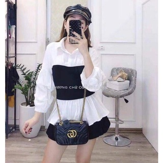 áo sơ mi phối màu cổ bẻ kiểu babydoll xinh xắn