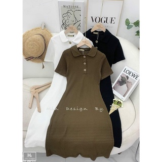Váy tổ ong cổ bẻ khuy dáng bo eo nhẹ tôn dáng