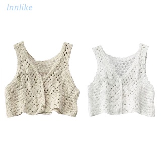 Áo Khoác Lửng Đan Len Không Tay Áo Hai Dây Cài Nút In Hoa Dành Cho Nữ