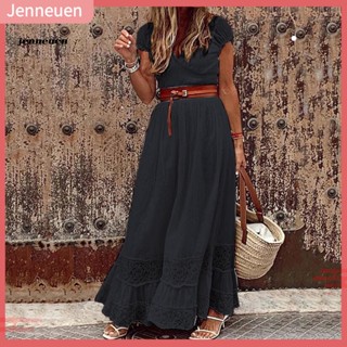 Đầm Maxi Tay Ngắn Cổ Chữ V Eo Cao Thời Trang Dự Tiệc Cho Nữ