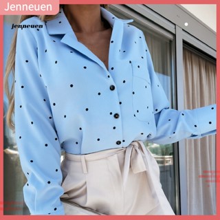 Áo Sơ Mi Tay Dài Cổ Chữ V Họa Tiết Chấm Bi Thời Trang Dành Cho Nữ