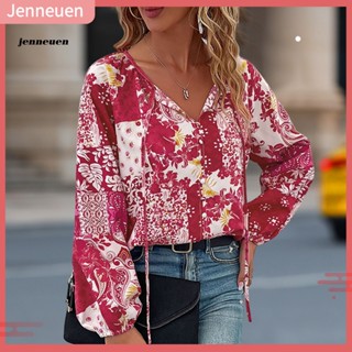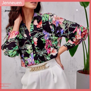 Áo Kiểu Tay Dài In Họa Tiết Hoa Màu Sắc Tương Phản Thời Trang Mùa Xuân Xinh Xắn Cho Nữ