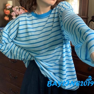 Áo Thun Nữ Dài Tay Cổ Tròn Họa Tiết Sọc Ngang Trẻ Trung Hợp Thời Trang