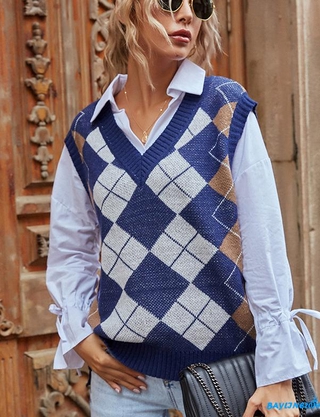 Áo len không tay in hình viên kim cương thời trang cho nữ