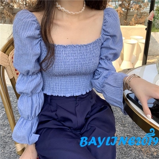 Áo Lửng Tay Dài Họa Tiết Sọc Thời Trang Quyến Rũ Cho Nữ