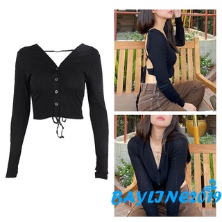 Áo kiểu tay dài cổ chữ V hở rốn thắt dây sau lưng quyến rũ thời trang dành cho nữ