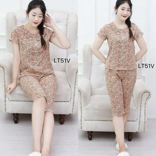 (BunnySky) Đồ bộ mặc nhà lửng hoa nhí mùa hè mát mẻ