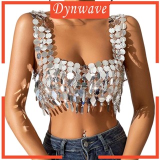 [Dynwave] Áo Crop Top Dây Đính Kim Sa Hóa Trang Bộ Lạc Múa Bụng Cho Nữ Dịp Halloween