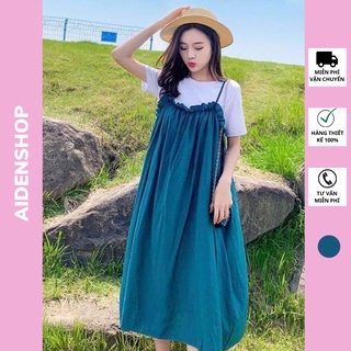 Váy bầu lanh mặc nhà 2 dây chất lanh mát mùa hè 2021