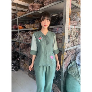Đồ Lam Đi Chùa # Bộ cúc tàu# Quần Áo Nữ