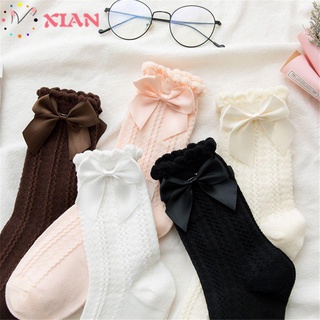 Xiantin Vớ Cotton Cổ Vừa Đính Nơ Phong Cách Lolita