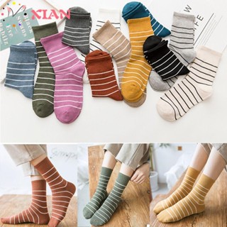 Xiantin Vớ Ống Lửng Co Giãn Họa Tiết Kẻ Sọc Màu Pastel Cổ Điển Cho Nữ