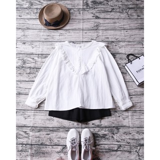 ÁO SƠ MI TRẮNG CỔ PHỐI BÈO CHỮ V TAY BỒNG