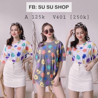 Áo Thun Tay Lỡ Nữ Phông Form Rộng Freesize mặc cặp, nhóm, lớp, đi học in hình hoa dáng Unisex