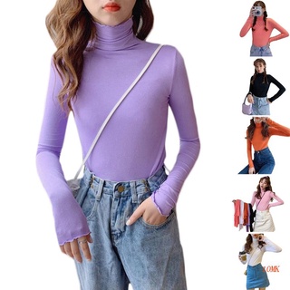 Áo Thun Tay Dài Cổ Lọ 10MK Màu Sắc Đơn Giản Phong Cách Hàn Quốc Cho Nữ