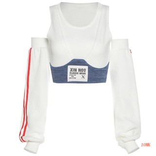 Xiangbao Áo Thun Crop Top Tay Dài Trễ Vai Phối Màu Tương Phản In Chữ Harajuku Có Gân K Cho Nữ Mùa Thu