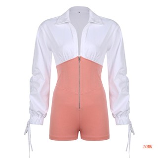 Bộ Áo Liền Quần Tay Phồng Ngắn Dáng Ôm Có Khóa Kéo Thời Trang Quyến Rũ Cho Nữ