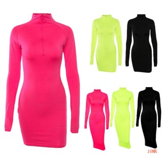Xiangbao Đầm Bodycon Tay Dài Cổ Lọ Có Dây Kéo Màu Dạ Quang Gợi Cảm Cho Nữ