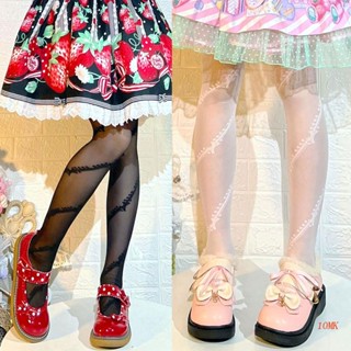 Quần Tất Mỏng Kẻ Sọc Đính Nơ Phong Cách Lolita Thời Trang Mùa Hè Cho Nữ