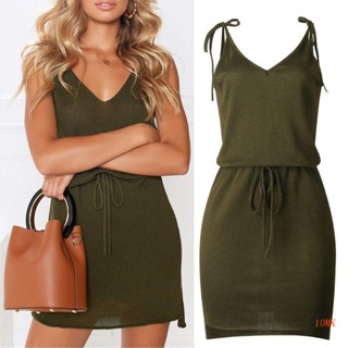 Đầm Mini Cổ Chữ V Hở Lưng Cột Dây Thời Trang Mùa Hè 2019 Cho Nữ