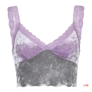 Xiangbao Áo Croptop Không Tay Cổ Chữ V Hở Lưng Phối Ren Hoa Màu Sắc Tương Phản Quyến Rũ Cho Nữ
