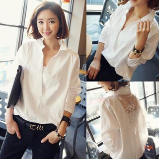 Áo Kiểu Tay Dài Cổ Chữ V Phối Ren Thời Trang Thanh Lịch Cho Nữ