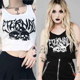 Xiangbao Áo Crop Top Dệt Kim Mỏng Không Tay In Họa Tiết Đầu Lâu Chữ Phong Cách Gothic Harajuku Mùa Hè Cho Nữ Irr