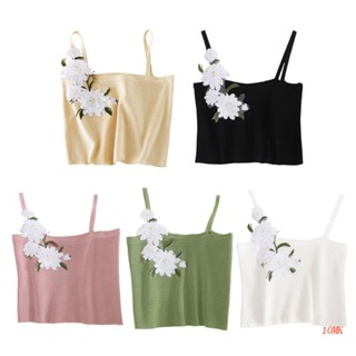 Áo Croptop Hai Dây Dệt Kim Họa Tiết Hoa Cúc Đính Kim Sa Lấp Lánh Thời Trang Mùa Hè Quyến Rũ Cho Nữ