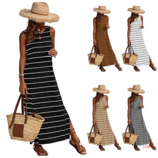 Đầm Dài Không Tay Cổ Tròn Họa Tiết Kẻ Sọc Thời Trang Mùa Hè Cho Nữ