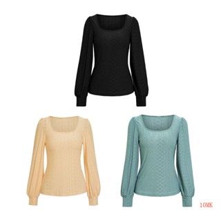 Áo Dệt Kim Tay Dài Cổ Chữ U Chất Liệu Co Giãn Màu Sắc Đơn Giản Cho Nữ