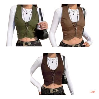 Xiangbao Áo Khoác Tuxedo Ôm Dáng Không Tay Cổ Chữ V Cài Nút Phong Cách Gothic Cho Nữ