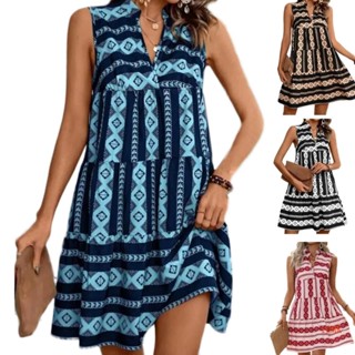 Đầm Mini Sát Nách Cổ Chữ V In Họa Tiết Thời Trang Mùa Hè Cho Nữ
