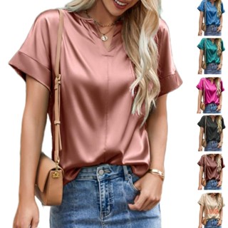 Xiangbao Áo Sơ Mi Satin Tay Ngắn Cổ Chữ V Dáng Rộng Vừa Vặn Cho Nữ