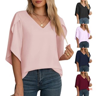Áo Thun Nữ Tay Lửng Cổ Chữ V Màu Sắc Thời Trang