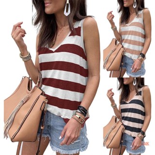 Xiangbao Áo Tank Top Không Tay Cổ Chữ V Họa Tiết Kẻ Sọc Thời Trang Thường Ngày Cho Nữ