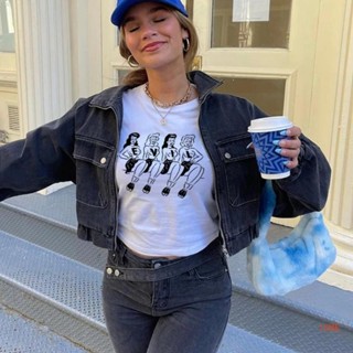 Áo Thun Croptop Tay Ngắn Dáng Ôm In Chữ Phối Màu Phong Cách Harajuku Vintage Cho Nữ