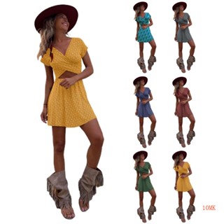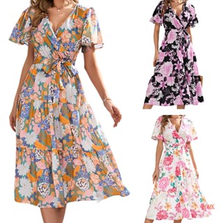 Đầm Xòe Ngắn Tay Cổ Chữ V In Hoa Thời Trang Mùa Hè Cho Nữ