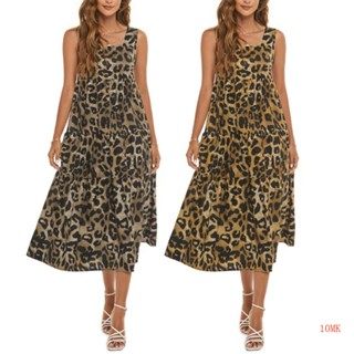 Đầm Midi Sát Nách Cổ Tròn Form Rộng Họa Tiết Da Báo Thời Trang Mùa Hè