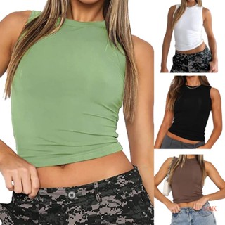 Xiangbao Áo Thun Không Tay Cổ Tròn Ôm Dáng Màu Trơn Cho Nữ