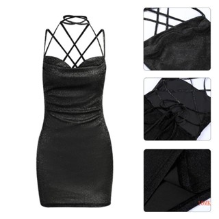 Xiangbao Đầm Ngắn Ôm Dáng Hai Dây Cổ Chữ V Đính Kim Sa Lấp Lánh Gợi Cảm Cho Nữ