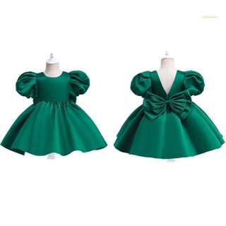 Đầm Công Chúa Satin Cổ Tròn Tay Ngắn Phồng Đính Hạt Ngọc Trai Thắt Nơ Lưng Dành Cho Bé Gái Đi Dự Tiệc Cưới