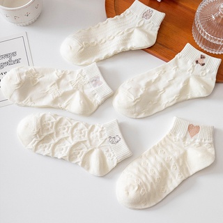 Vớ Thuyền Ngắn Bằng Cotton Polyester Mềm Màu Trơn In Họa Tiết Gấu Nhỏ Dễ Thương Thời Trang Mùa Hè Cho Nữ