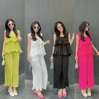 Set bộ đồ nữ áo tay phồng xếp ly ngực mix quần ống rộng với 3 tone màu tôn da siêu xinh dành cho các nàng yêu