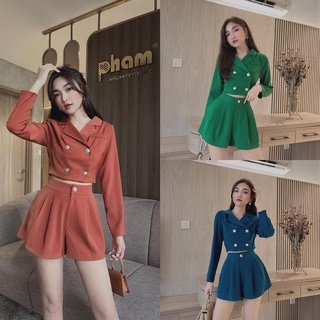 Sét vest nữ ngắn tay phối quần dài 4 màu sắc (Xanh lá, Nõn chuối, Nâu, Hồng) sang chảnh dạo phố, công sở