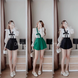 Sét bộ đồ nữ áo tay phồng xếp ly eo phối quần đùi siêu xinh đa đạng màu sắc (Đen, Xanh, Hồng, Nâu).