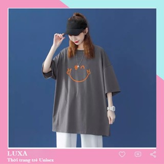 Áo thun tay lỡ unisex form rộng MẶT CƯỜI LUXA, Áo phông nam nữ ulzzang