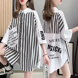 Áo Sơ Mi Kẻ Sọc Dáng Rộng Ngắn Tay Phong Cách Hàn Quốc Dành Cho Nữ C9413
